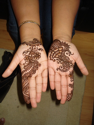 Henna designs most popularly known as mehndi designs, mehndi or henna tattoos, a popular culture in India, Pakistan, Africa and Gulf. It is also a form of decoration especially for brides. From the earlier times Mehndi is prepared from the plant called "HENNA (an arabic word)."Some historians suggest that the culture of mehndi art in India was introduced by Moghuls, whereas there are few people who suggest henna is a 5000 year old culture in the country. To prepare the mehndi, the leaves of henna are crushed into fine powder and then water is added; other natural items such as lemon, etc can also be added to increase the color.It is mostly treated as a female art. There are varieties of henna available including normal brown, cone, black, red, and sparkles. In fact, it is named after the region such as – Indian mehndi, Arabic mehndi, African mehndi, Irani or Persian mehndi, Pakistani, Punjabi, Rajasthani, etc. We are having all these varieties too.